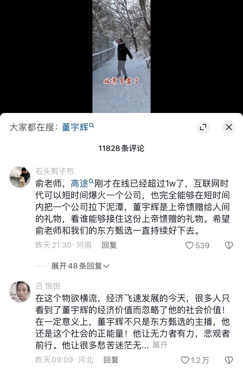 就连俞敏洪的抖音评论区也被攻陷了,有人奔走相告“高途在线已经超过一万了”,力挺董宇辉称“他是上帝赐予的礼物,看谁能接住这份礼物”,还有人呼吁“放孩子一条路,让董宇辉休息一段时间”。