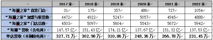 到2022年末,“海澜之家”品牌的直营与加盟店总计5942家,合计销售额137.53亿元(含电商收入)。平均单店销售额约为231.45万元(不考虑门店业开业时间是否满12个月)。