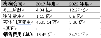 到2022年度,海澜的销售费用已经暴涨到34.24亿元。5年时间增长了超过18亿元。
