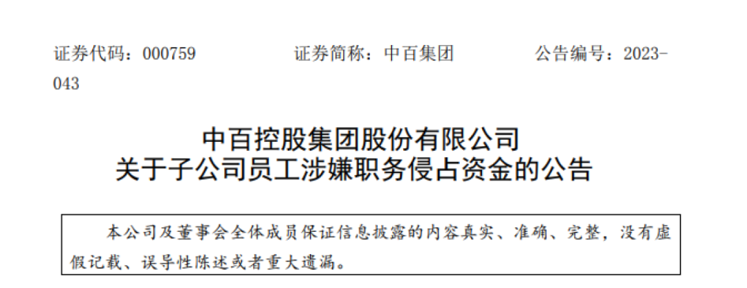 根据公告,嫌疑人为其子公司中百仓储超市有限公司(以下简称“中百仓储超市”)财务人员。2023年10月13日,公安机关已将窜逃到境外的相关犯罪嫌疑人全部抓捕到案。