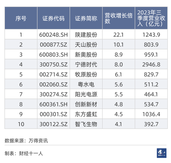 营业收入增长倍数十强公司
