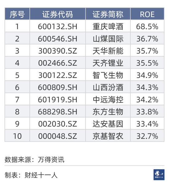 十大净资产收益率(ROE)公司