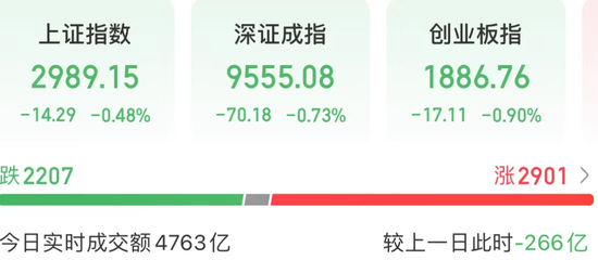 上午收盘,上证指数下跌0.48%,深证成指下跌0.73%,创业板指下跌0.9%。
